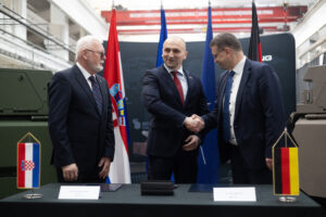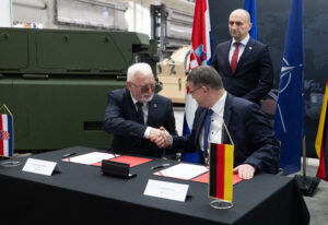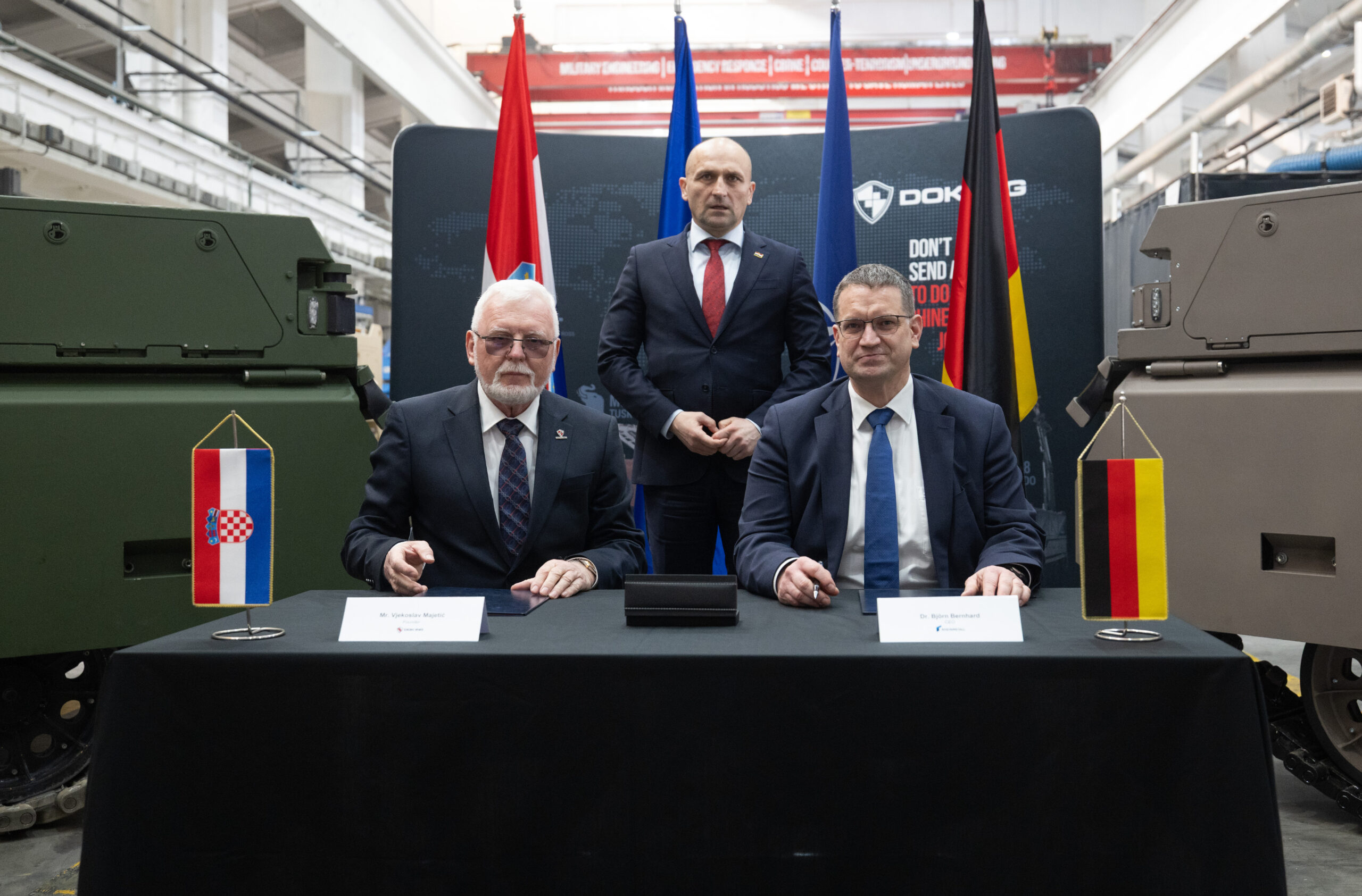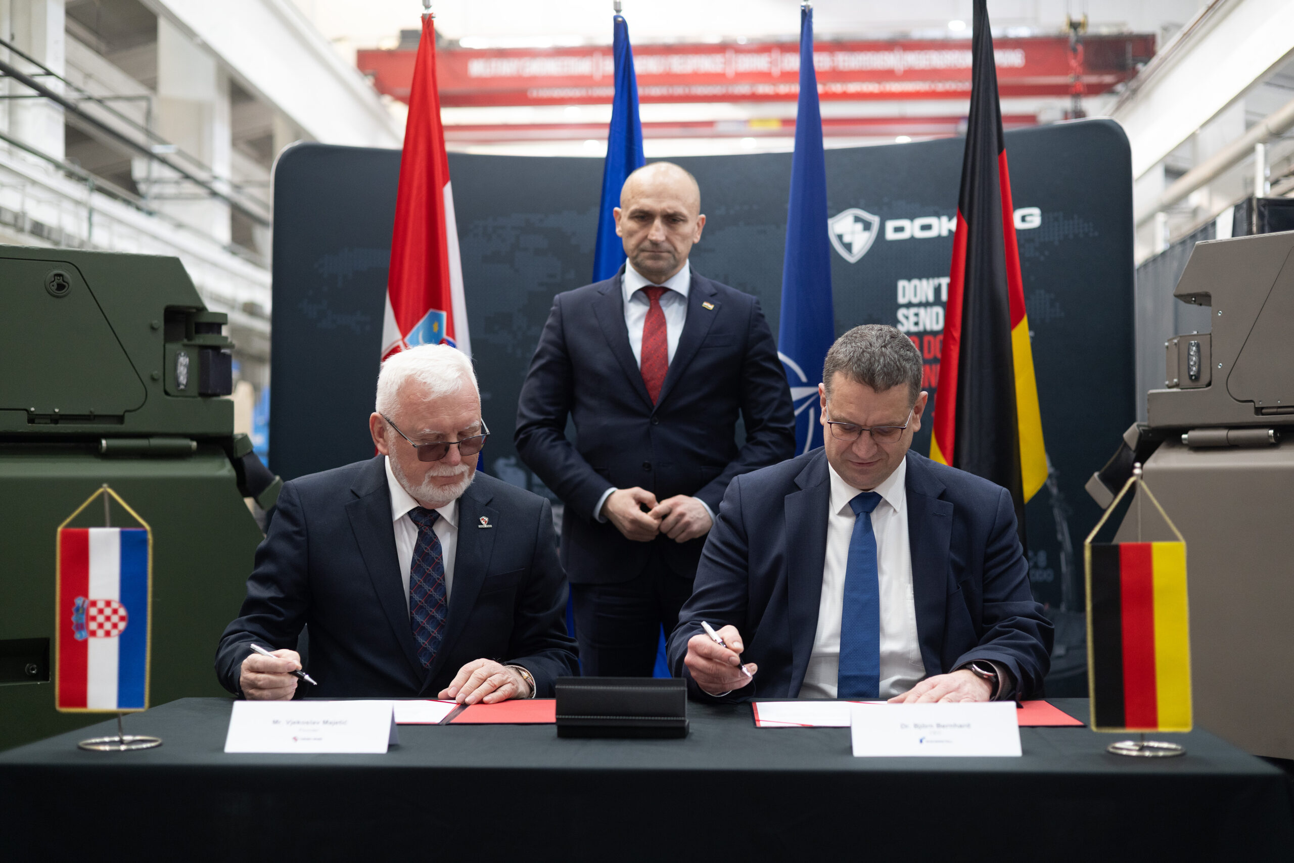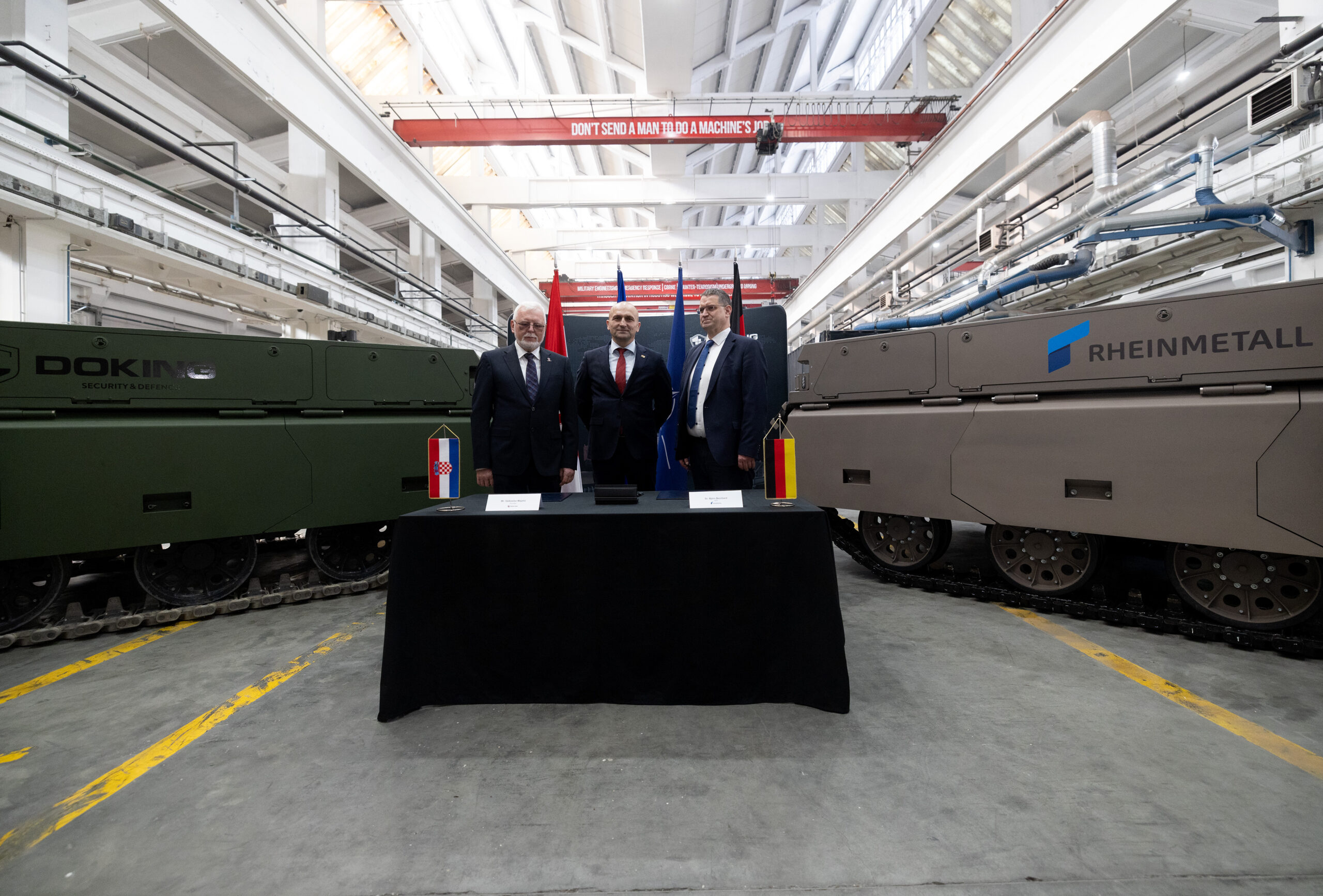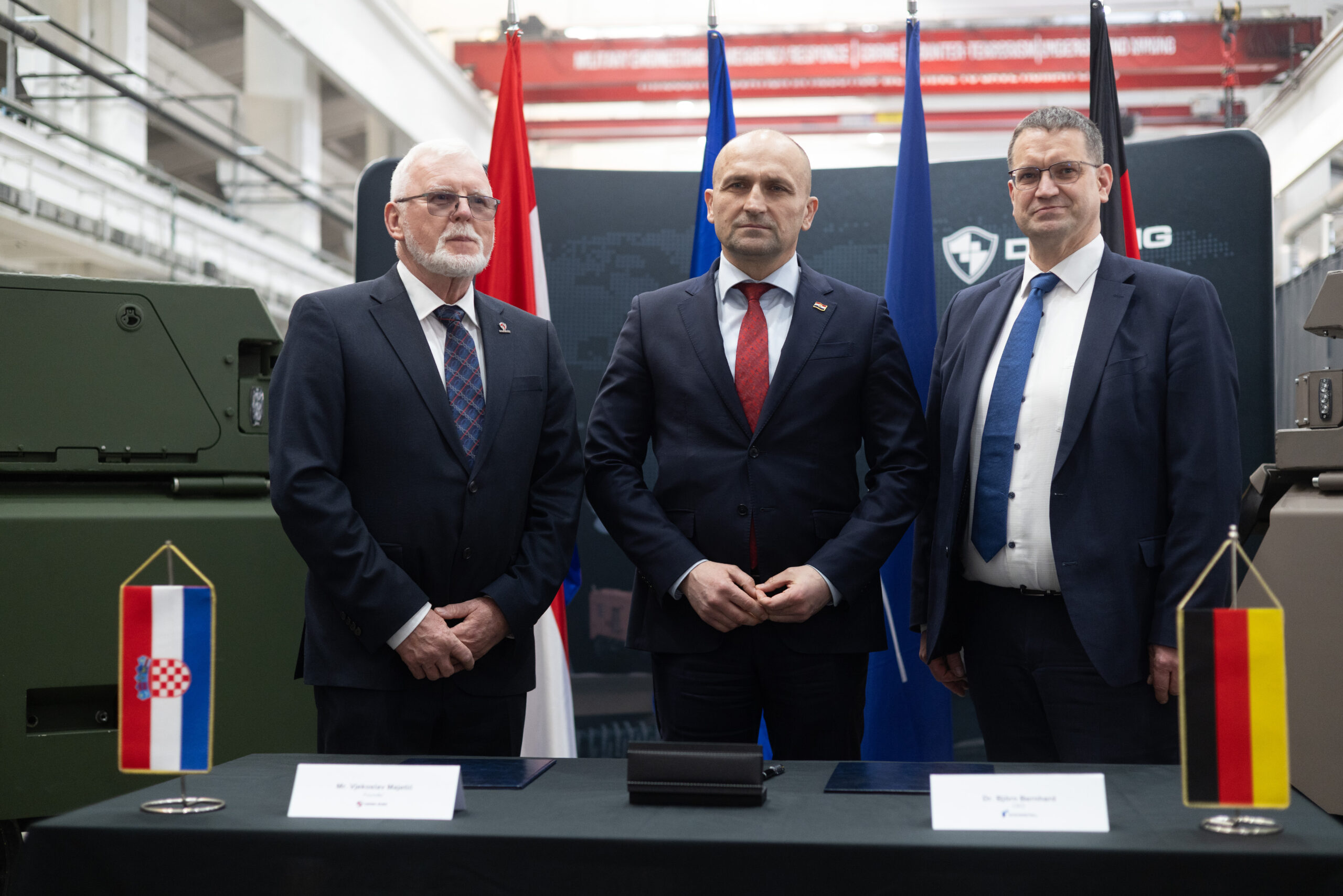 In the presence of the Deputy Prime Minister and Minister of Defence of the Republic of Croatia, Ivan Anušić, the agreement was signed by Vjekoslav Majetić, founder of DOK-ING, and Dr. Björn Bernhard, CEO of the Vehicle Systems Europe division at Rheinmetall.